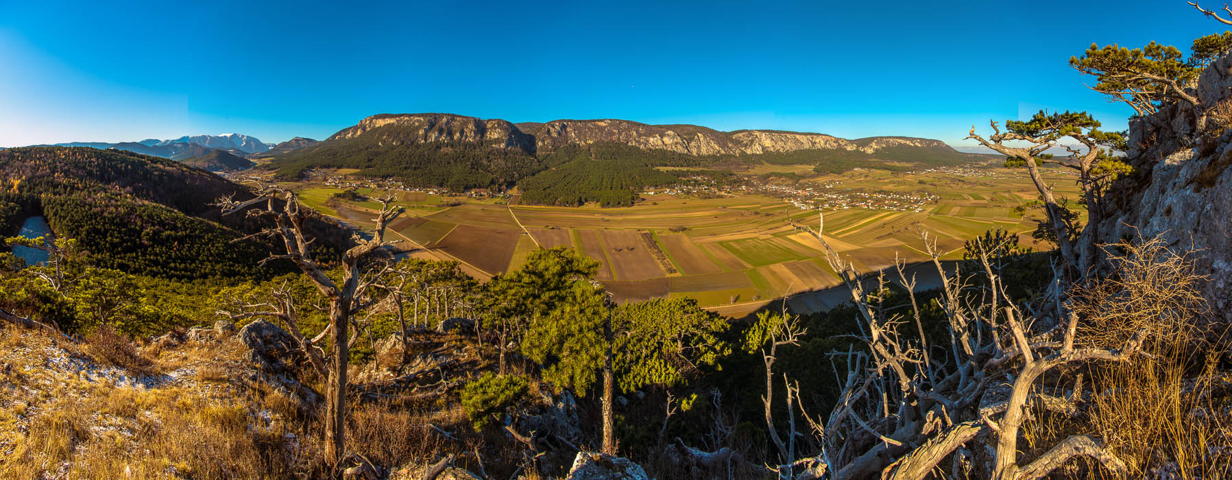 Panorama von Schneeberg und Hoher Wand, vom Kienberg Westgrat aus aufgenommen.