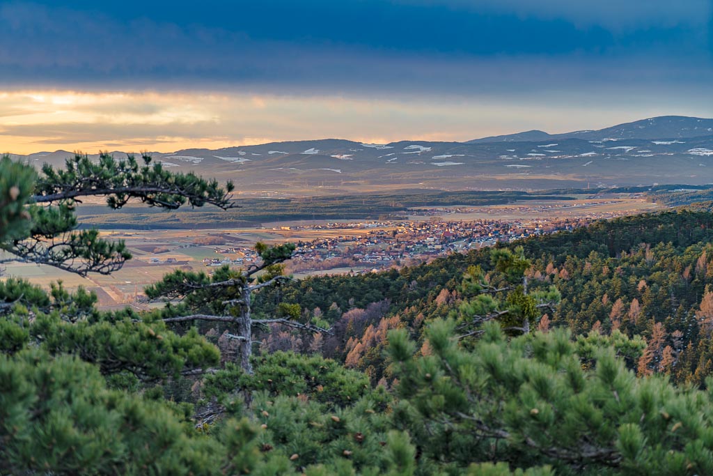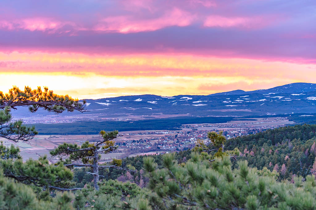 Erste Sonnenstrahlen auch auf Willendorf und dem südliche Steinfeld mit der Buckligen Welt.