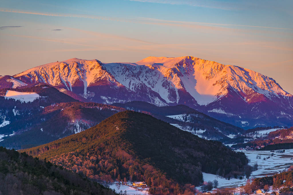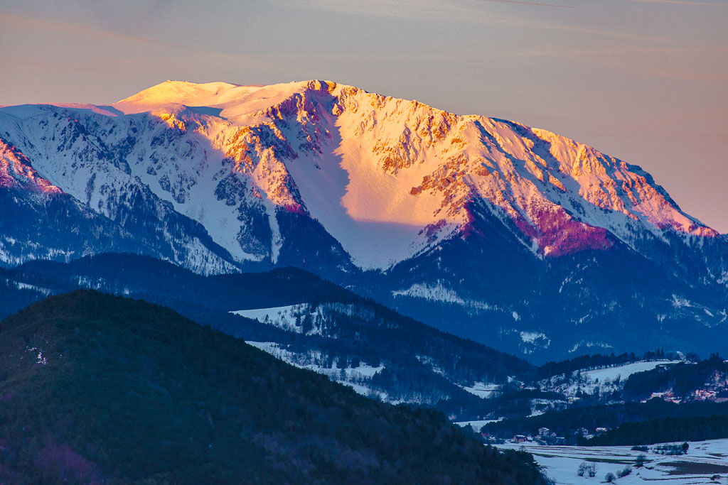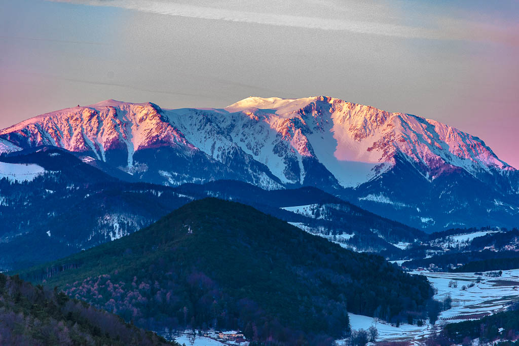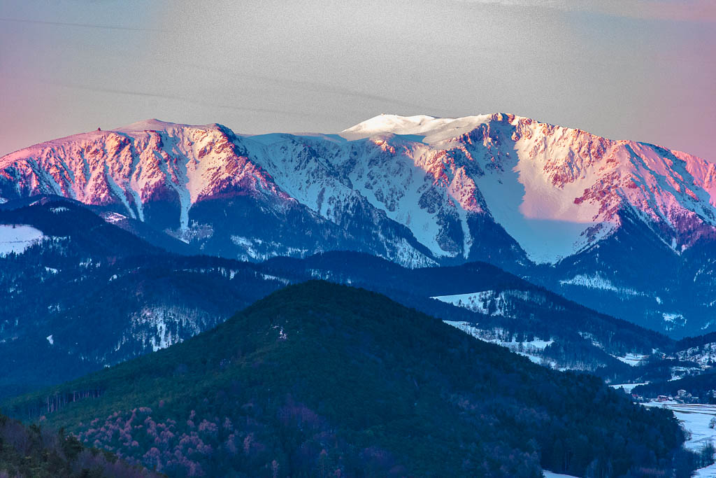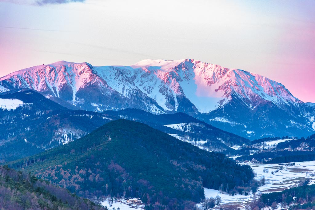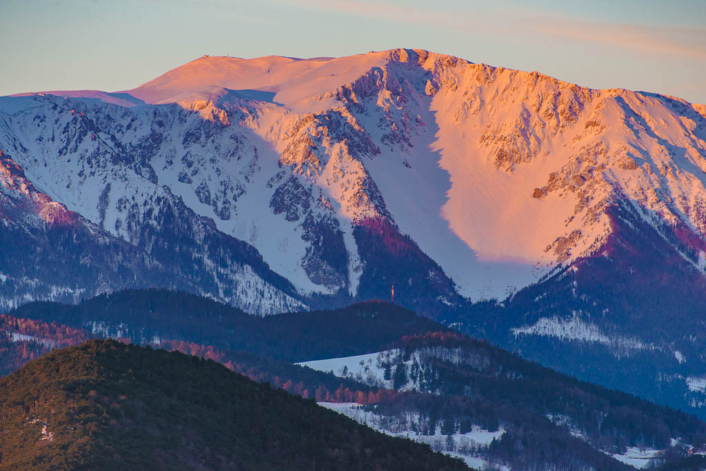 Angeregt durch den gestrigen Anblick vom tief verschneiten Schneeberg stehe ich heute früh auf und fahre nach Zweiersdorf, um vom Kienberg die ersten Sonnenstrahlen am Schneeberg zu erleben.