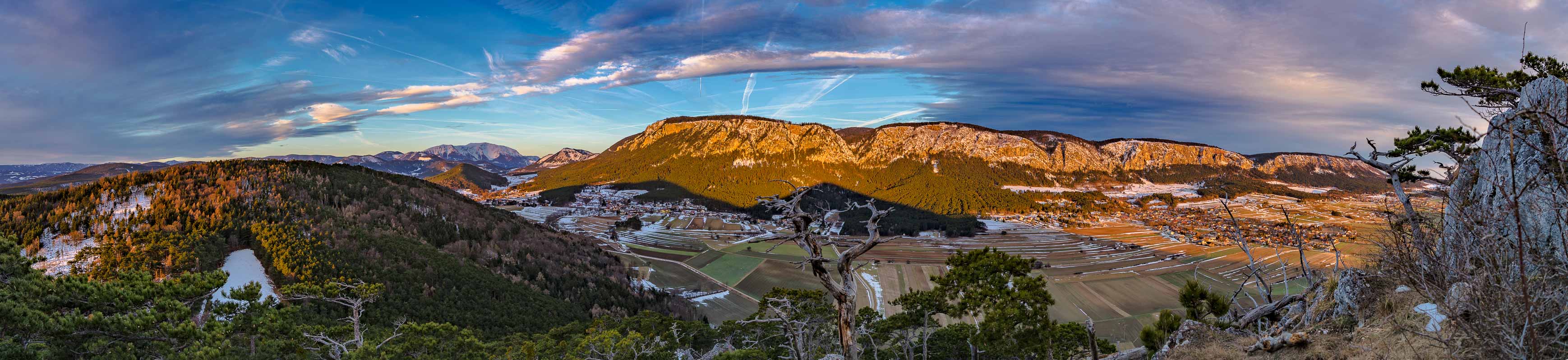 Panorama vom Kienberg aus, mit Wechsel, Schneeberg und Hoher Wand.