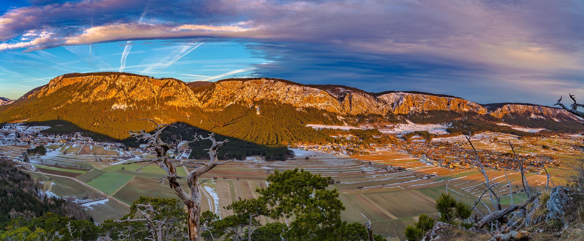 Teilpanorama, Hohe Wand. Links die Häuser von Zweiersdorf.