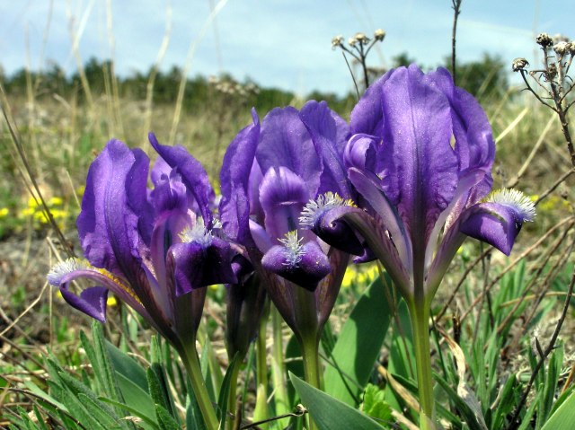 First blossoms of tiny Iris (Iris pumila).