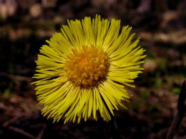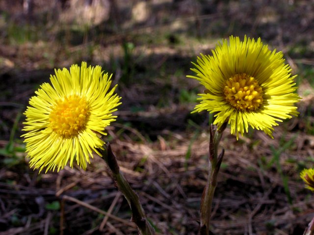 Coltsfoot (coughwort, foalfoot, Tussilago farfara) blossoms on very cool and shady places near the path.