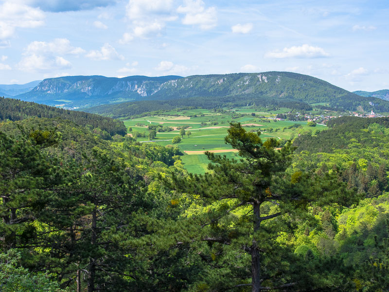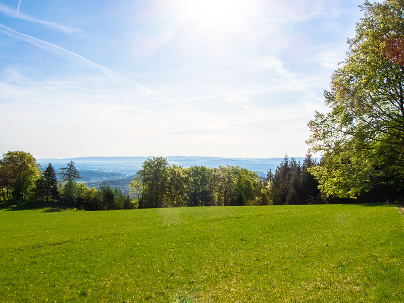 Between the pines there is a nice view to Dreistetten and Hohe Wand.