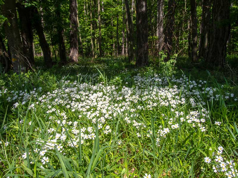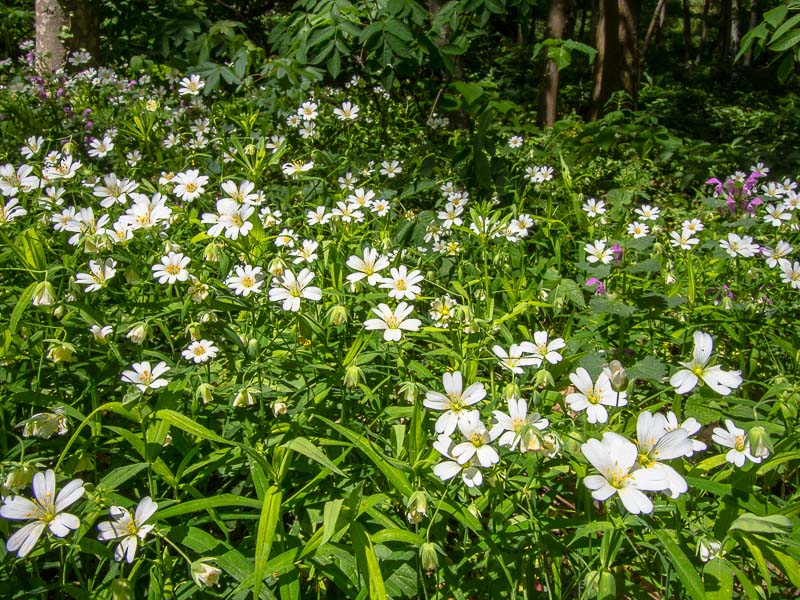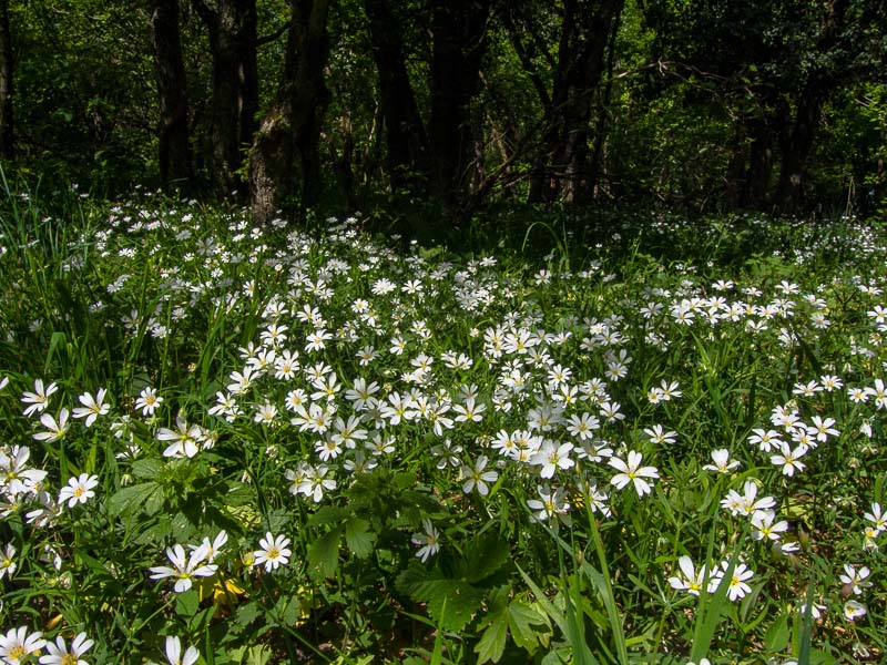 Greater Stitchwort (Stellaria holostea) in abundance inside the forest ...