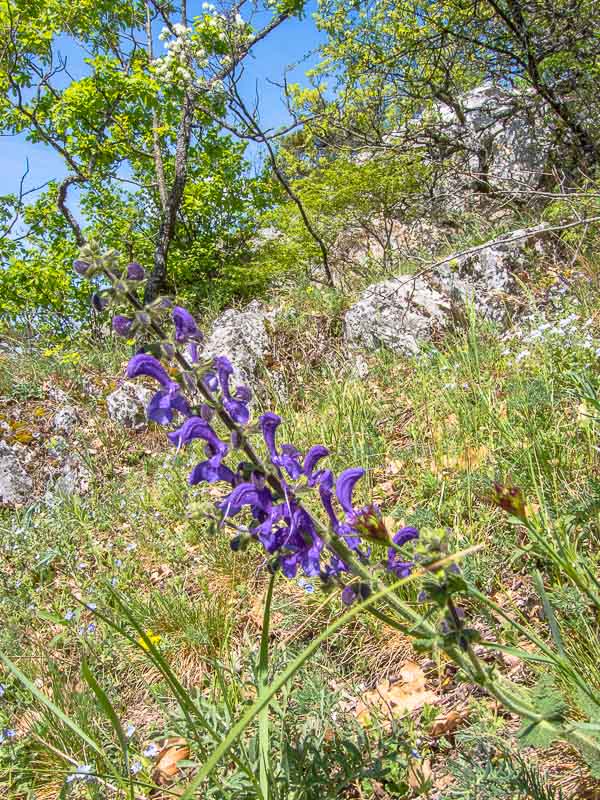 First meadow sage (Salvia pratensis) o the sunny southern slope that I now walk back to the main road. Pannonic vegetation is growing here.