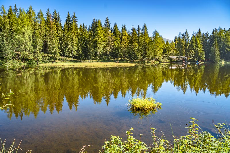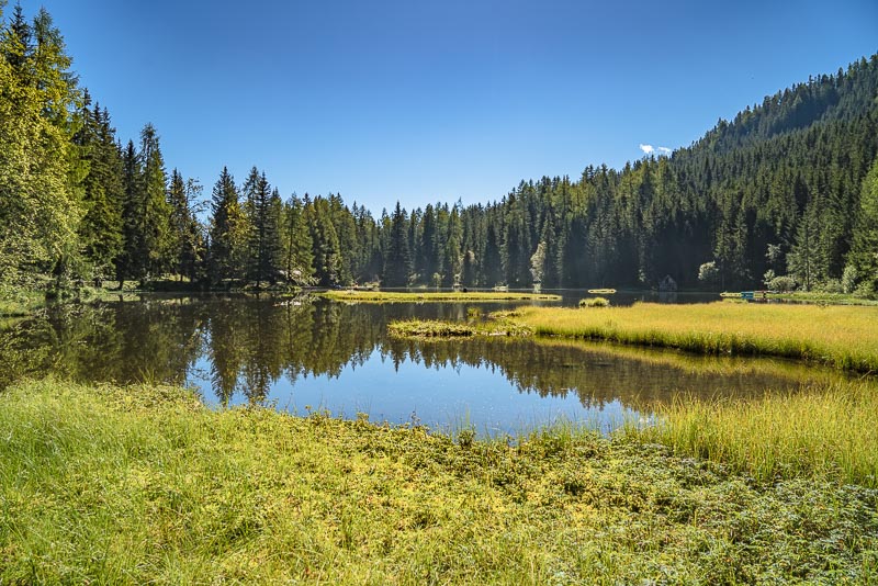 Ein idyllischer kleiner Moorsee in eine Senke am Hang des Weidschober.