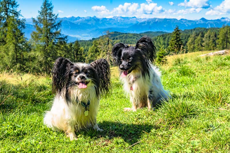 Lucy und Bella rasten sich am Gipfel aus, bevor es auf anderem Weg, quer durch den Wald, wieder hinunter geht. Das Resultat des Abstechers: gebackene Herrenpilze heute Abend und Eierschwammerlsauce am Montag.