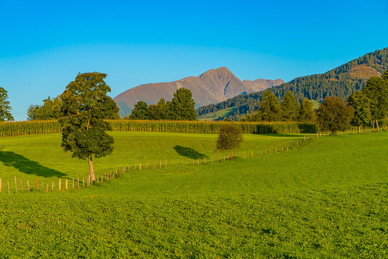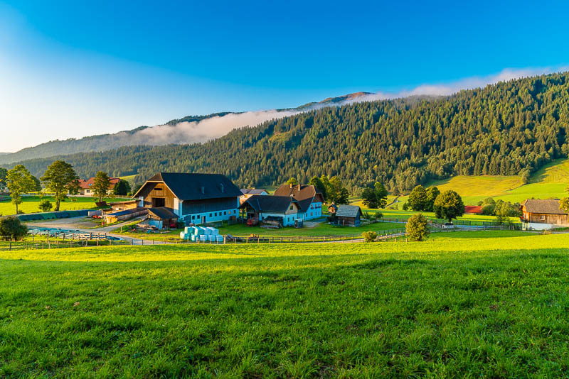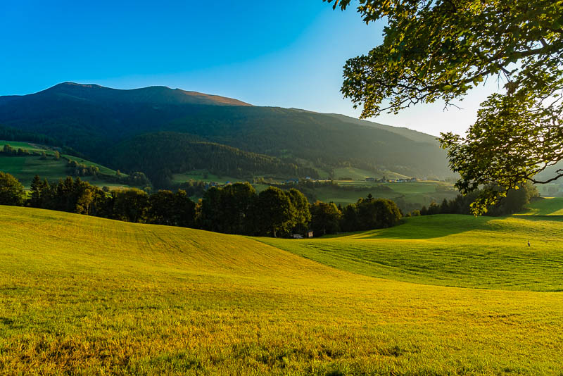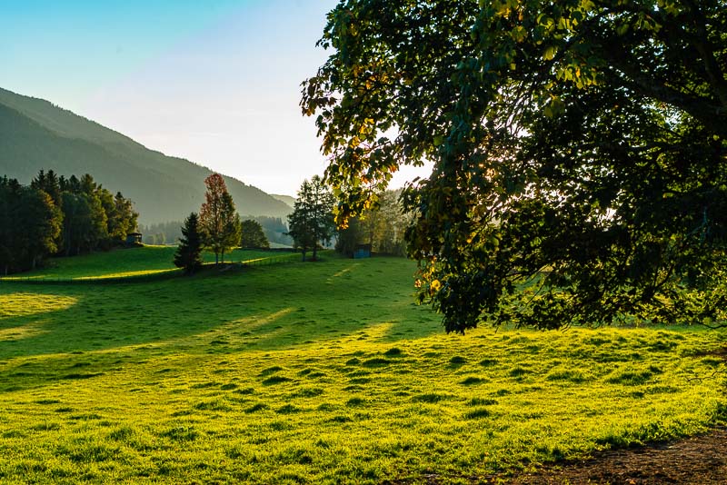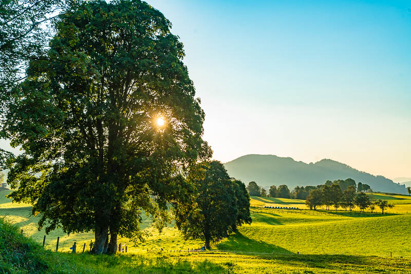 Am Morgen wieder am Hügel beim Bauernhof unterwegs