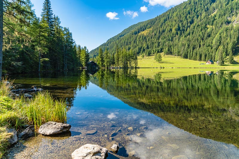 Es geht los. Das Auto beim Etrachsee geparkt, und gleich hinter dem Parkplatz ist der wunderschöne Etrachsee.