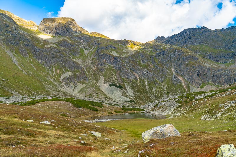 Der sehr kleine Sauofensee am Talschluss, zu dem wir nicht mehr ganz hinuntergehen.