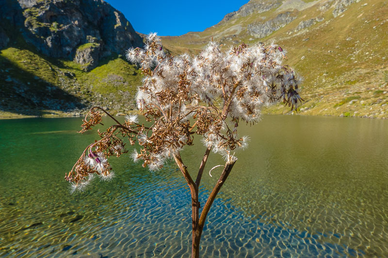 Ein "Nachzügler" einer Alpenküchenschelle (Pulsatilla alpina). Blüten und Fruchtstände zugleich fast am gleichen Ort findet man nicht so häufig.