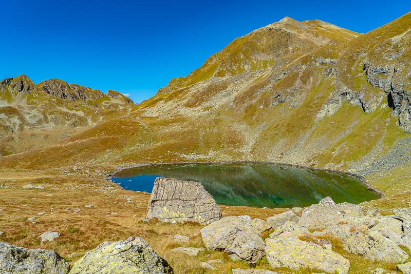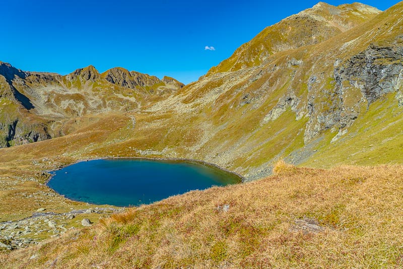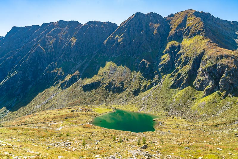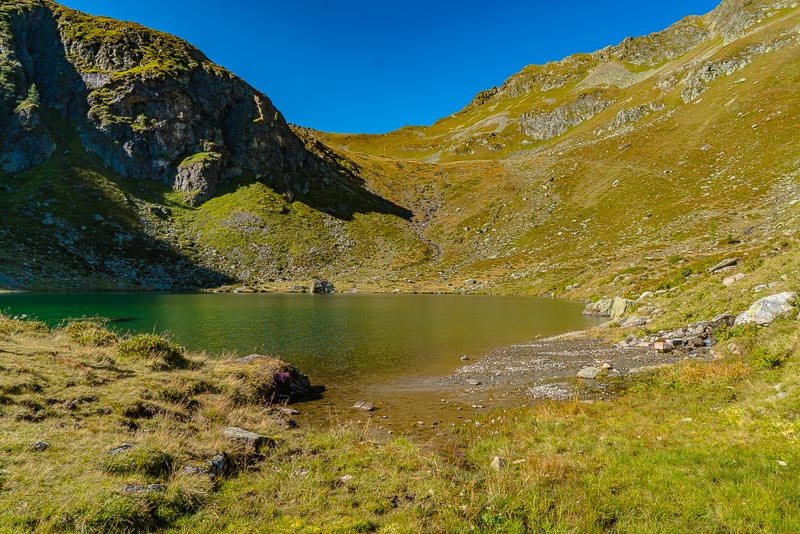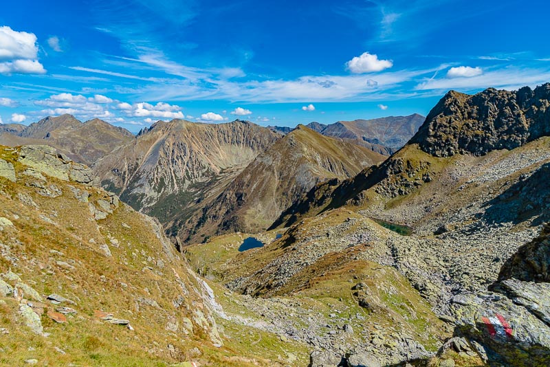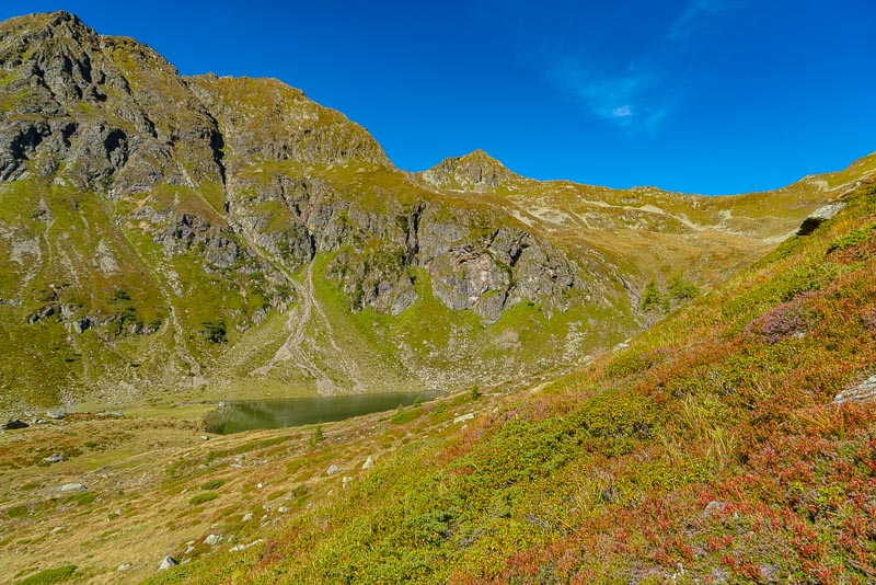 Rückblick zum See. Wir sind weiter gewandert, in Richtung Hinterkarscharte.