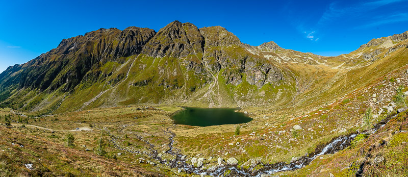 Ein weiteres Panorama des namenlosen Sees oberhalb vom Rantensee. Hierher oder ins Bild klicken für eine größere Darstellung.