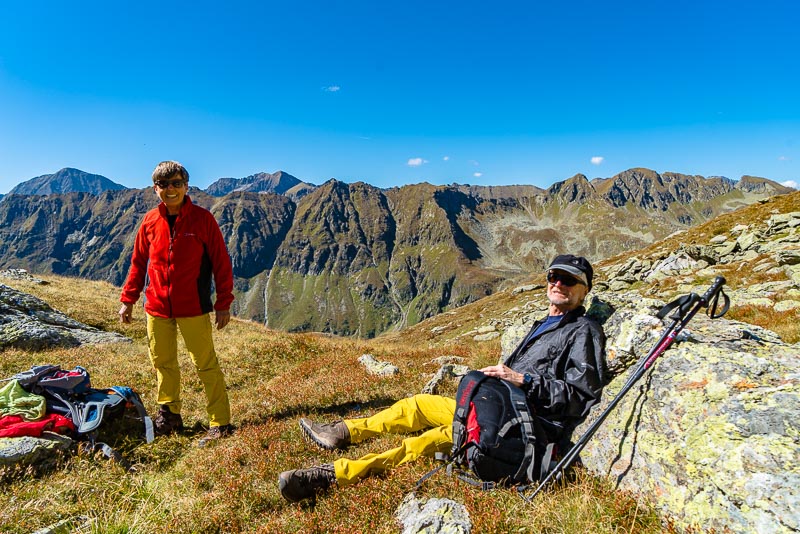 Auf ziemlich genau 2.200 m Seehöhe machen wir eine ausgiebige Rast. Ernst geht nicht mehr weiter zur Scharte.
