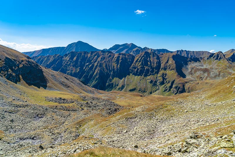 Blick zurück, voraus am Rückweg über das große Kar oberhalb des namenlosen Sees.