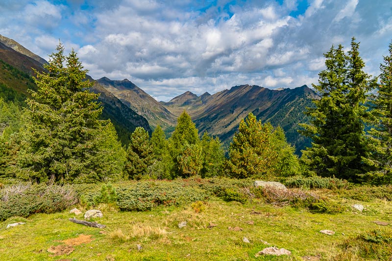 Auf dem Sattel bei der Grazer Hütte angelangt; Blick ins Prebertal.