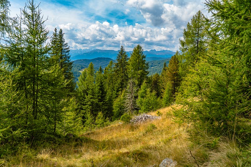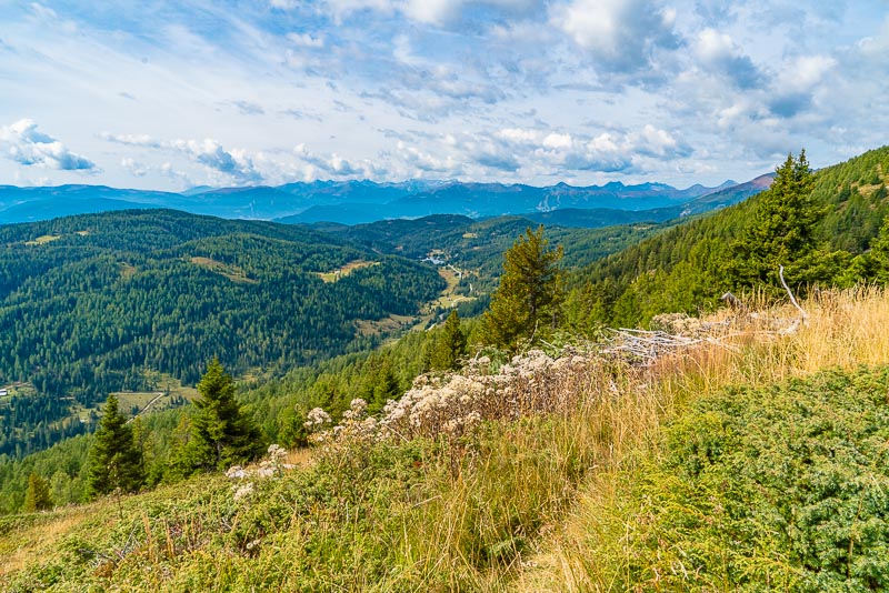 Nach Westen sieht man zu den Nockbergen und den Hohen Tauern.
