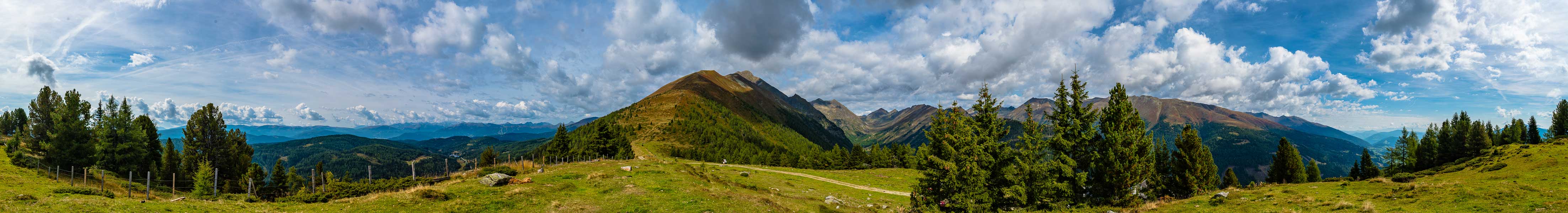 Panorama vom Sattelkogel (1.896 m), neben dessen Gipfel die Grazer Hütte steht (hier rechts neben dem Preber, hinter Bäumen versteckt).