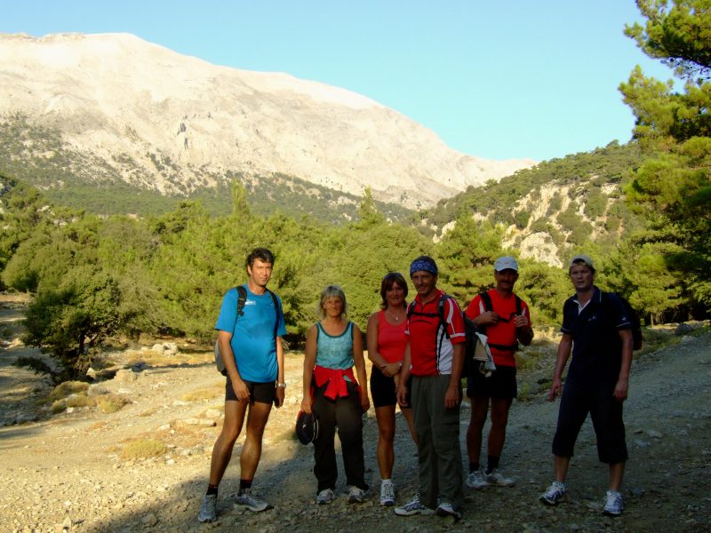 On my first mountain bike tour I got to know two nice Bavarians, and we played with the cards on some occasions. When I told them about my plans of a long mountain walk in the Dikti - mountains, they spontanuoslyly decided to join me, together with their wifes. Two more Austrian made up our group to seven people, who entered the hired cars at 5.15 a.m. for a a drive to the little hamlet of Selakano, about 40 km afar, on about 1.000 m height and high above the village of Mirtos (on the south coast about 20 km west of Ierapetra).