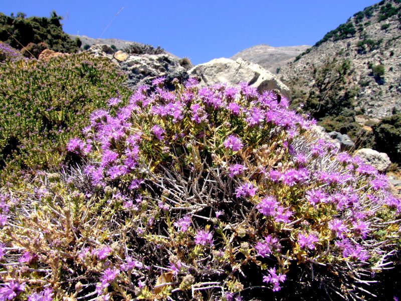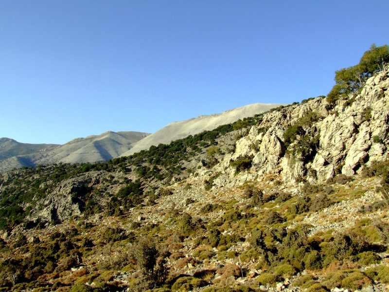 One main striking feature of the Cretian mountains is that there is nearly no grass up there: only thorny bushes and dry resistant trees.