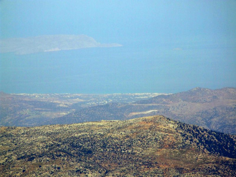 View to the northwest with Sarakino (1.586 m) and Toumba moutsouras (1.538 m). The Aegaean sea only can be anticipated.