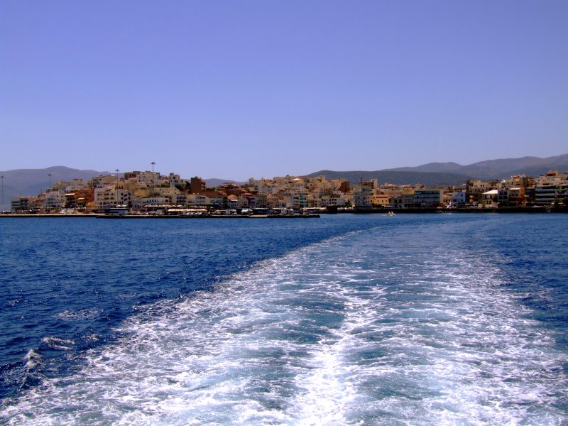 ... and Agios Nikolaos is vanishing behind the stern waves of the boat.