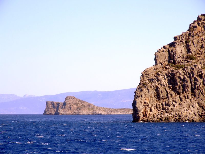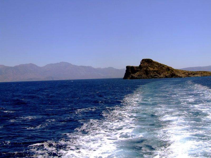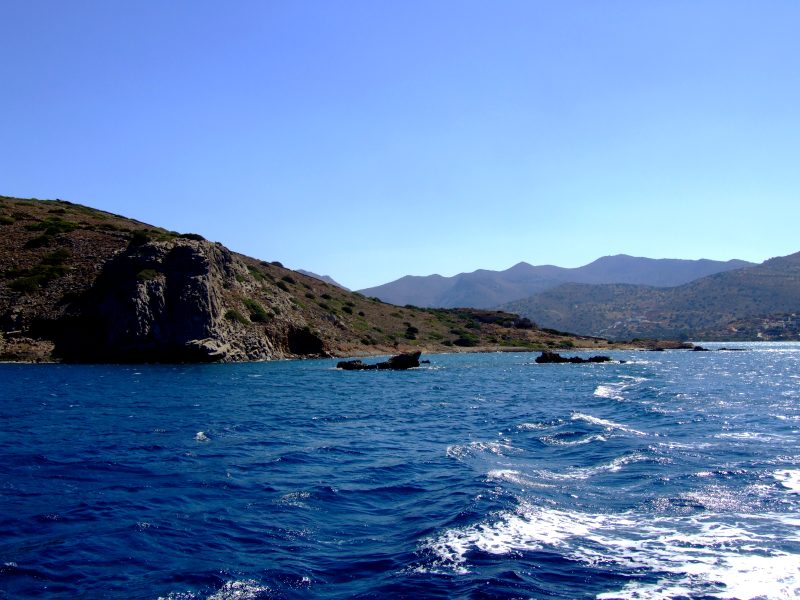 Finally, the isle of Spinalonga is in sight, offshore of the northern end of Kolokitha peninsula.