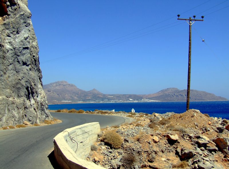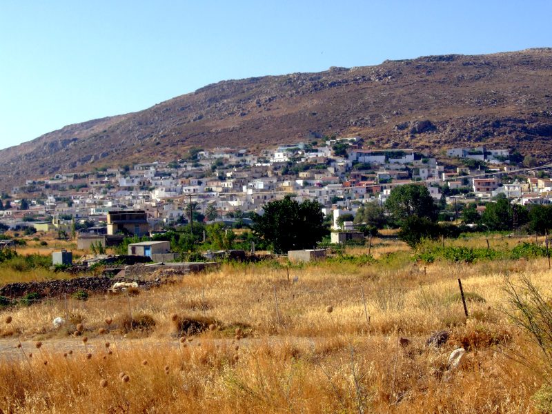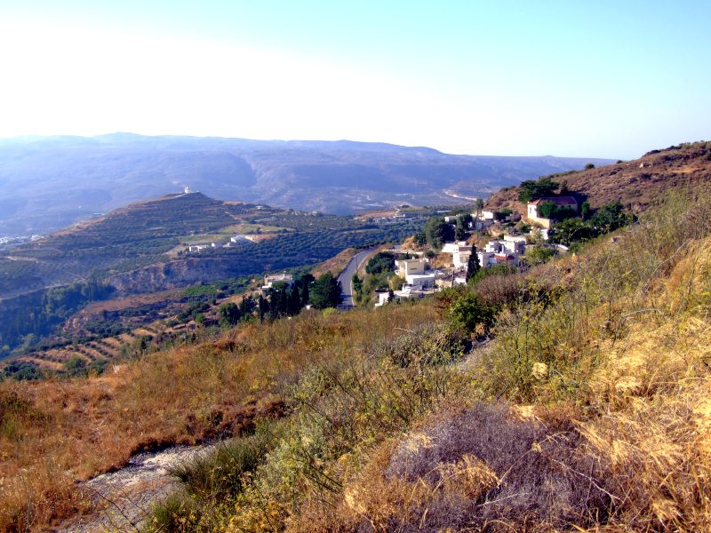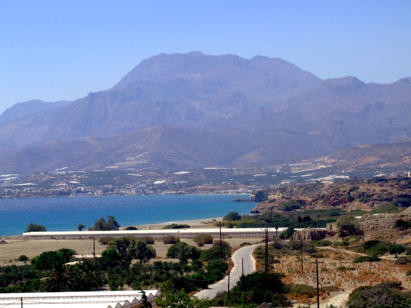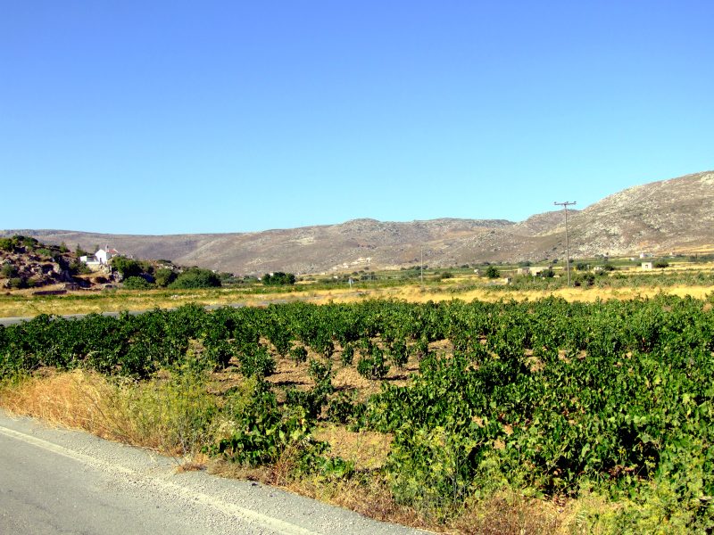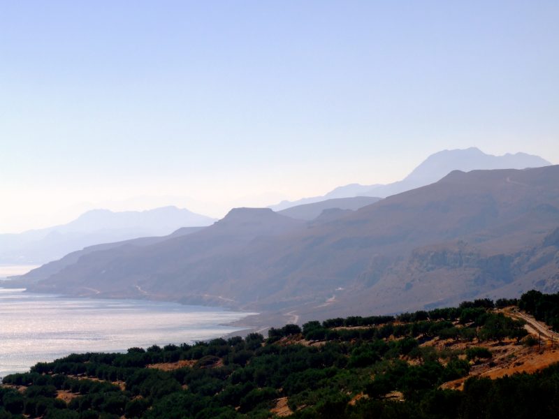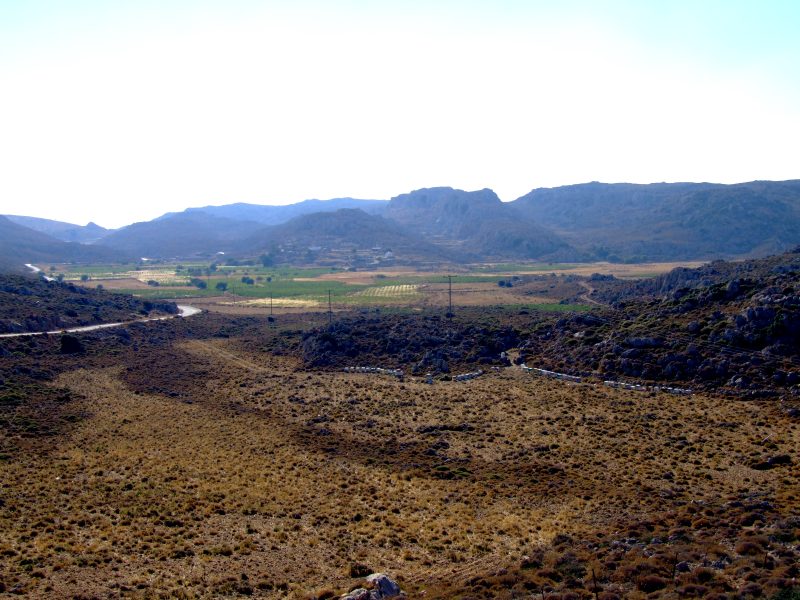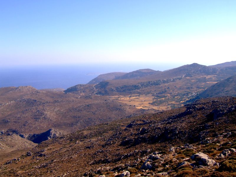 From Goudhouras the road winds up a hill. From there the view back where I have come. On the horizon far right still Afendis Stavramenos.