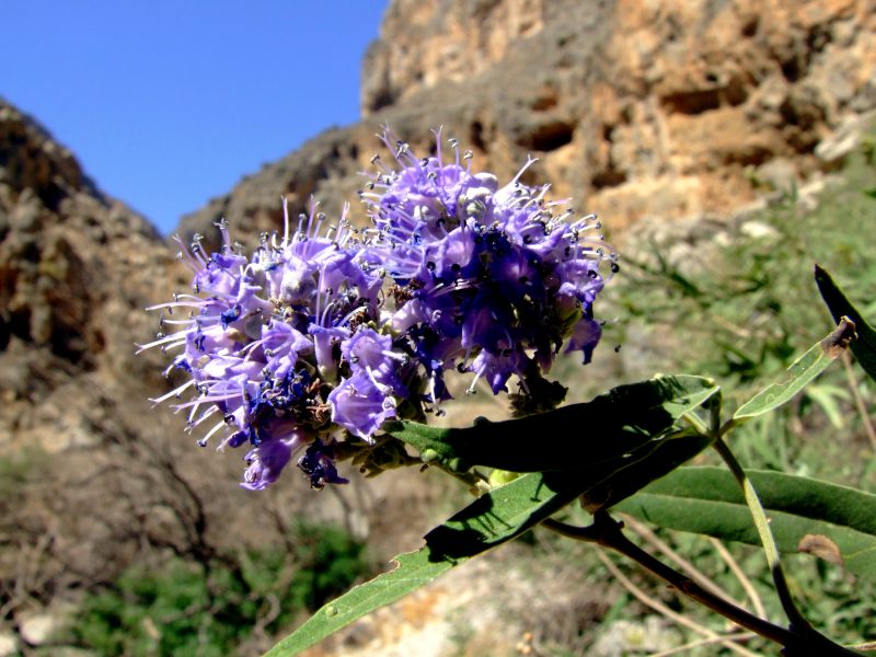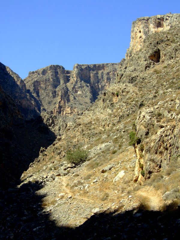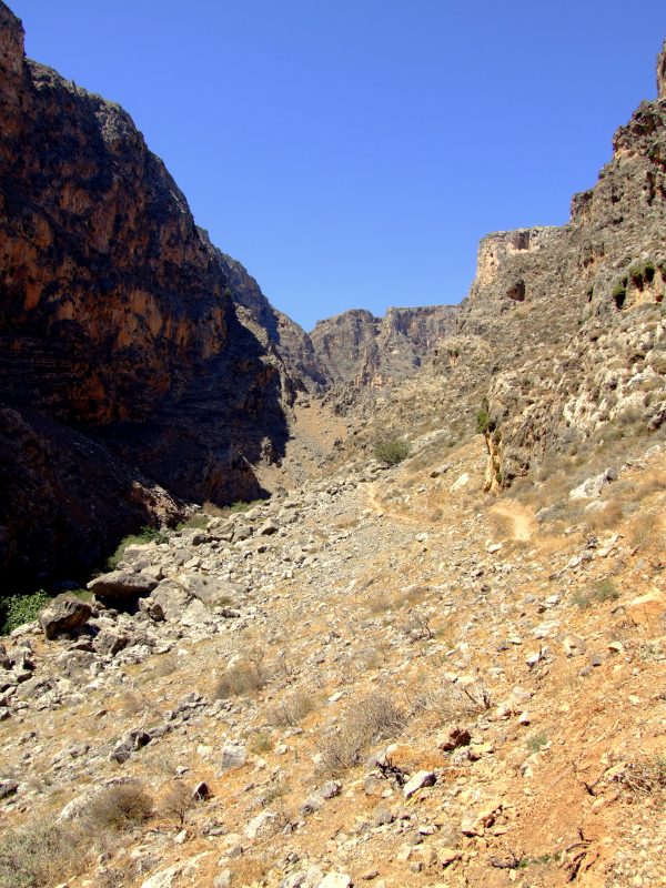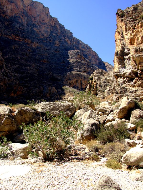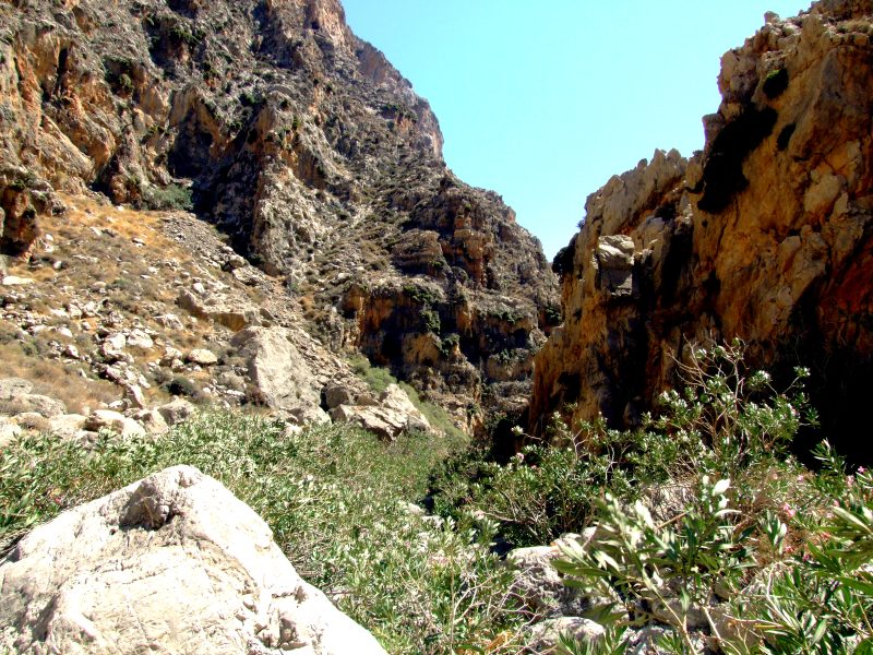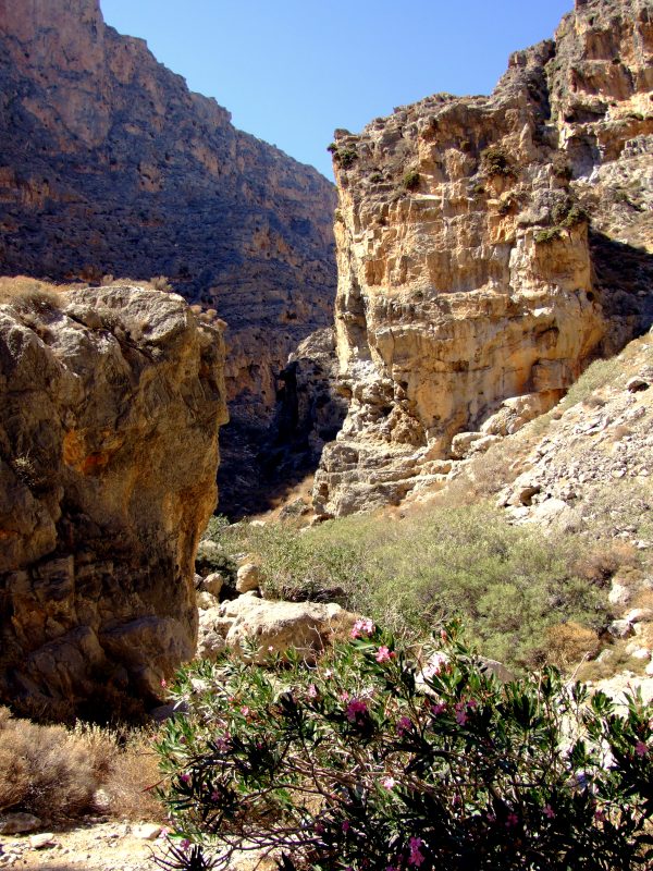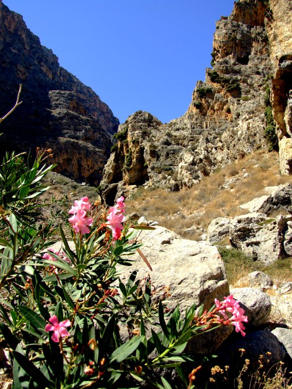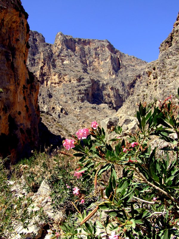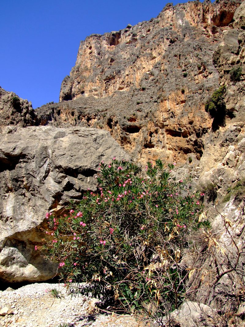 On the ground of the gorge wild Oleander is growing as well as numerous other plants not found on the dry slopes.