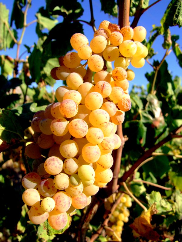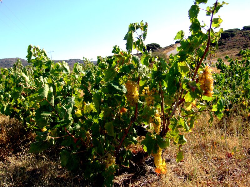Numerous vineyards with nearly ripe grapes.