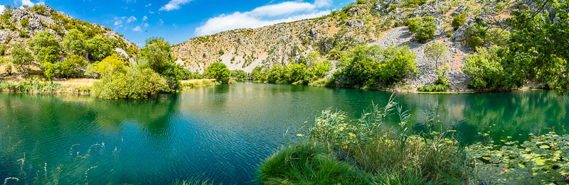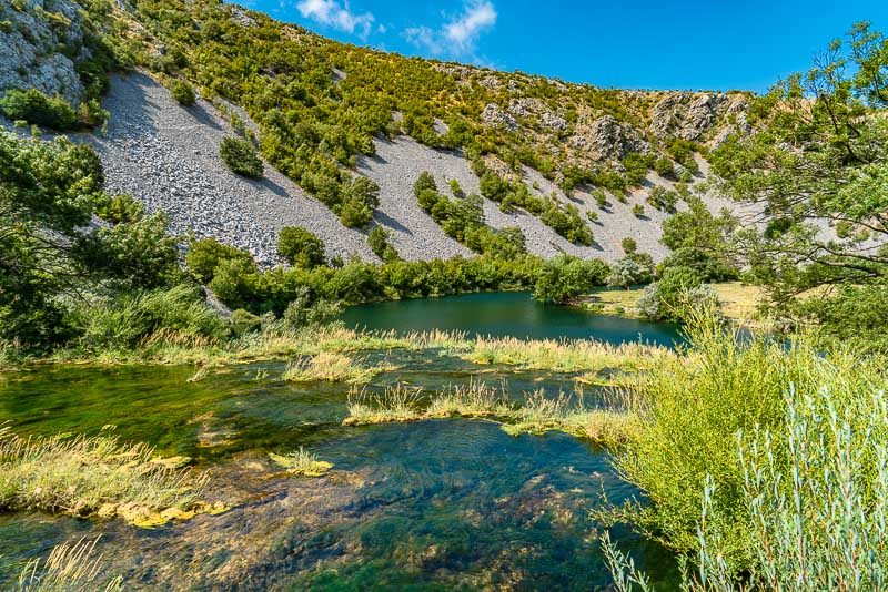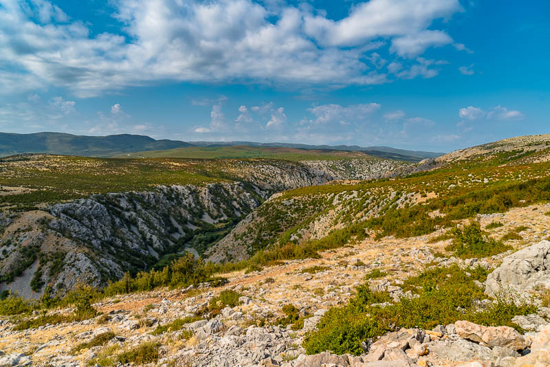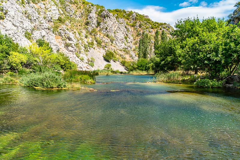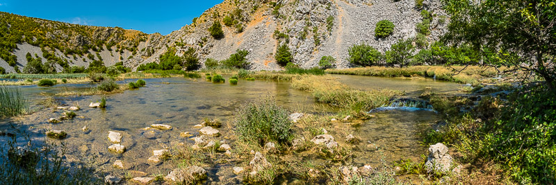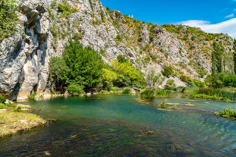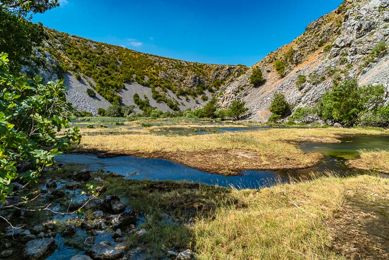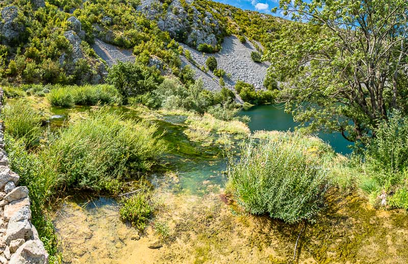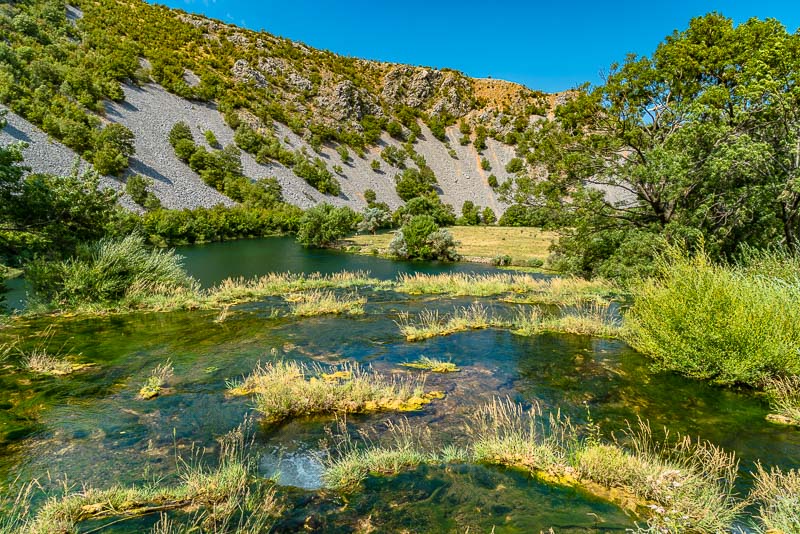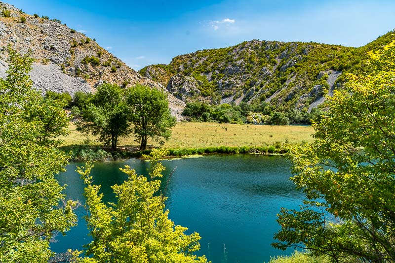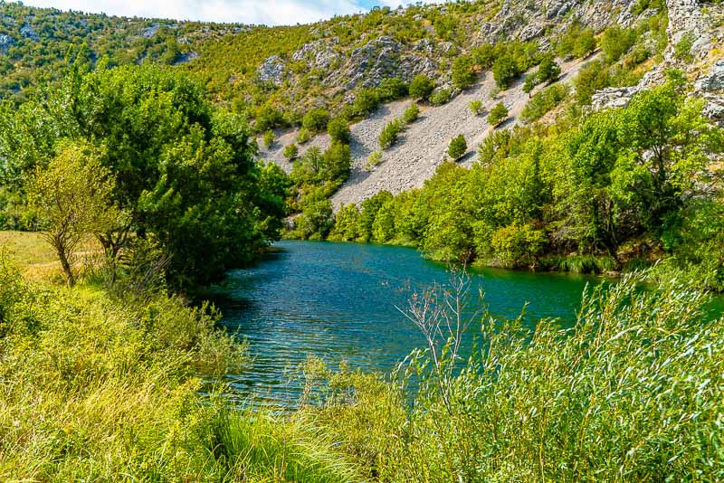 The Krupa valley is rather wide here. The river flows through many lakes and waterfalls, similar to the much more known areas of Plitvice and Krka.