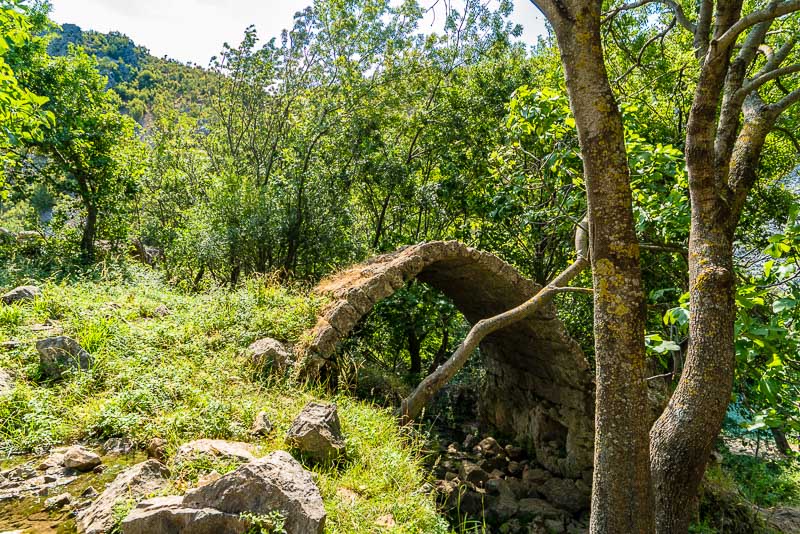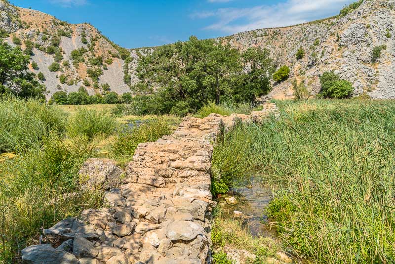 Our desitnation is the bridge called Kudin Most. This bridge is built of of travertine with 12 separate arcs, at the turn from 18th to 19th century. The legend says that it was built by a wedding party to enable Kuda, a young man from Kastel Zegarski, to meet his bride from Golubic.