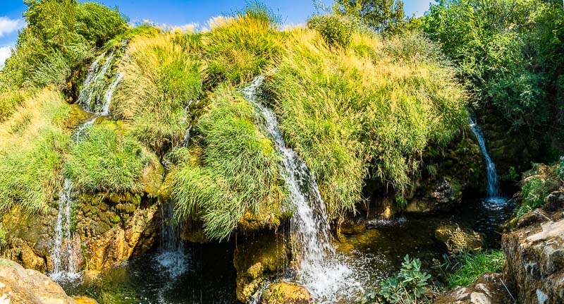 Arrived at the valley floor, we first turn to the right to walk the oval, flat grassland, to look at the waterfalls beneath the bridge.