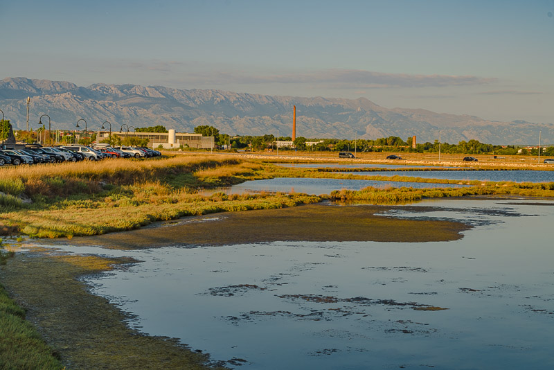 On the way back to the car, with the view over the lagoon to the Velebit mountains.
