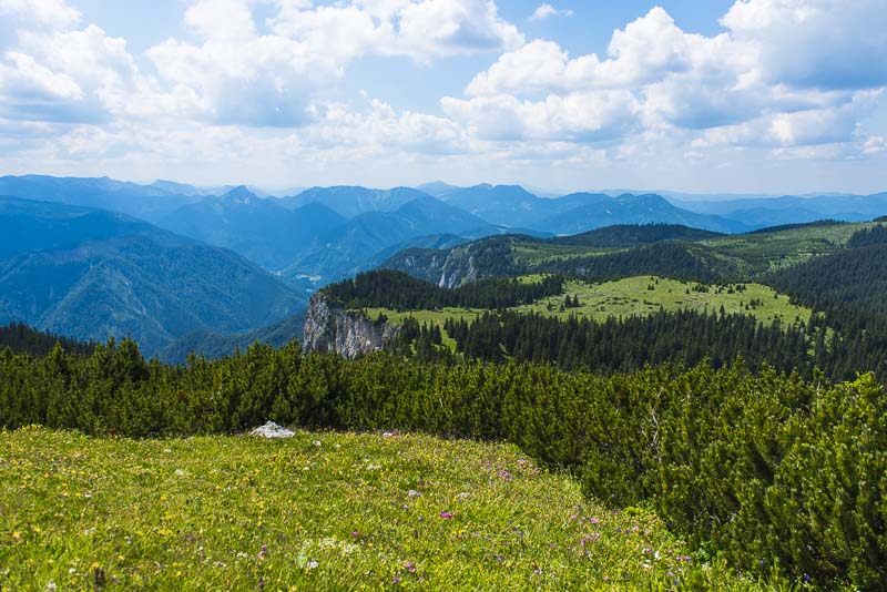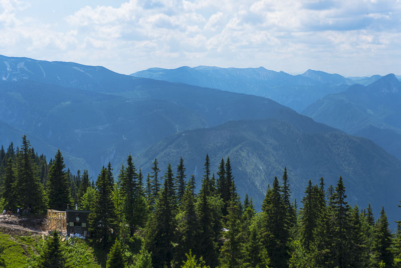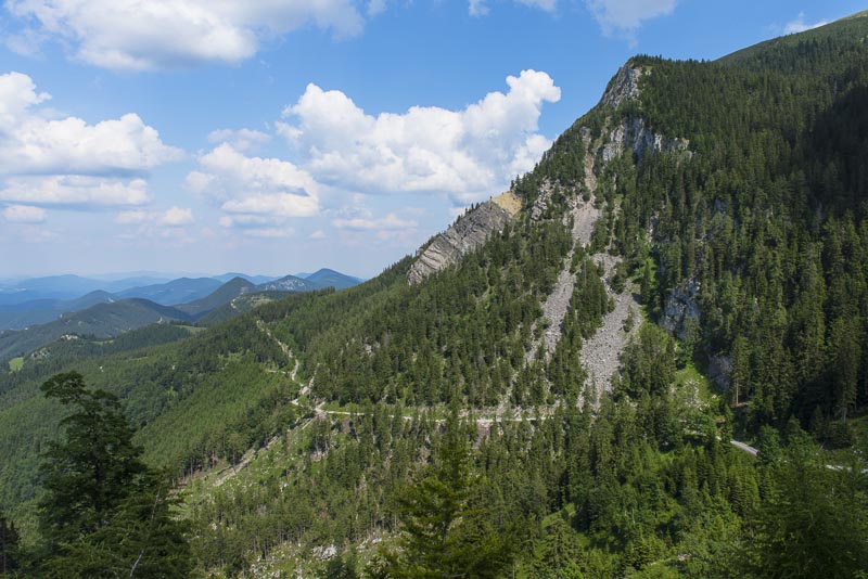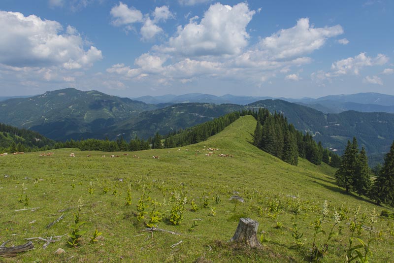 Kuhschneeberg, der spitze Gipfel im Hintergrund links der Mitte ist der Sonnleitstein bei Hinternaßwald.