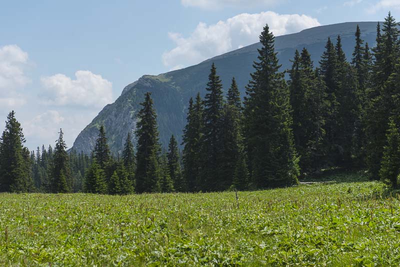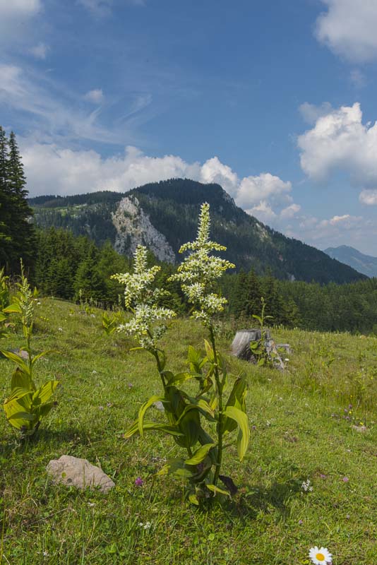 Weißer Germer (Veratrum album), dahinter der Rötlingstein (1.532 m), welcher zum Kuhschneeberg gehört.