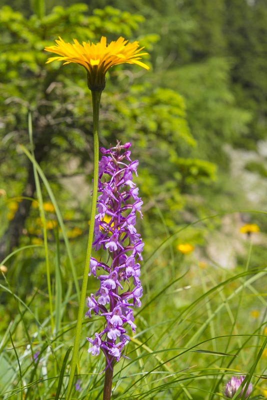Hier finde ich zwei Exemplare des Kohlröschens, hier wohl am ehesten das "gewöhnliche" Kohlröschen (Nigritella nigra subsp. rhellicani)