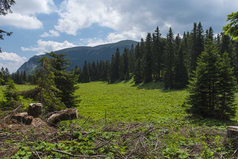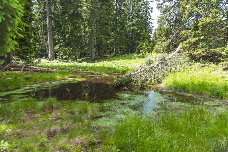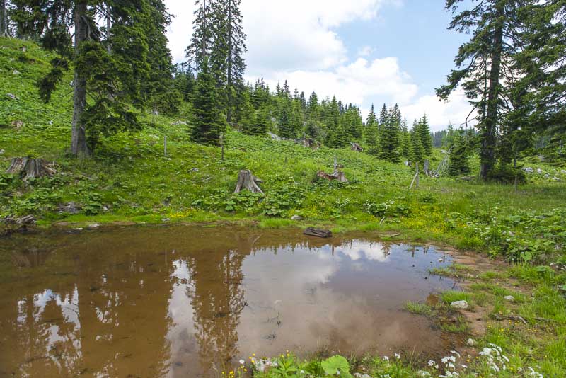 Ich bin zum Kuhschneeberg abgezweigt. Was ich in der Karte voll Hoffnung als Quelle gelesen habe, entpuppt sich als Lacke. Kein Trinkwasser.