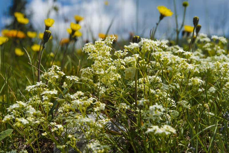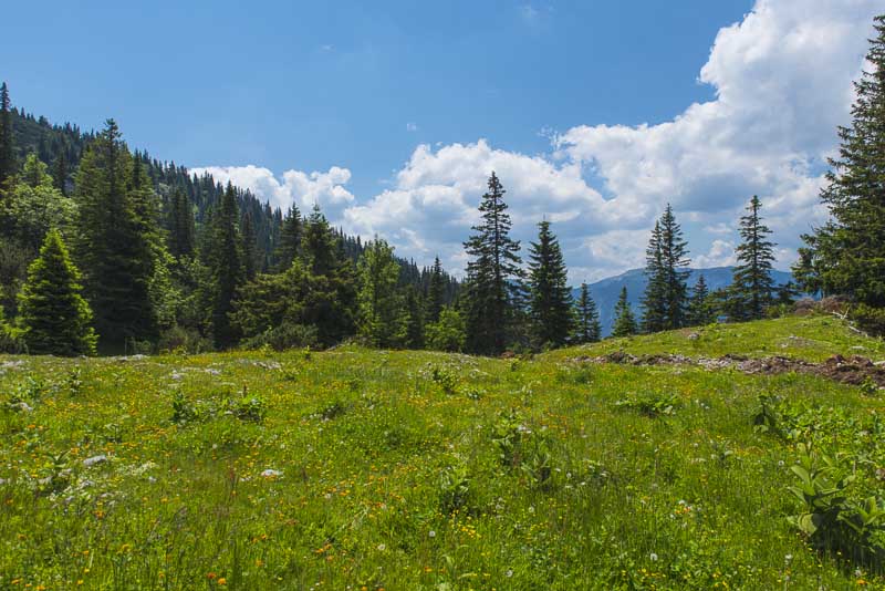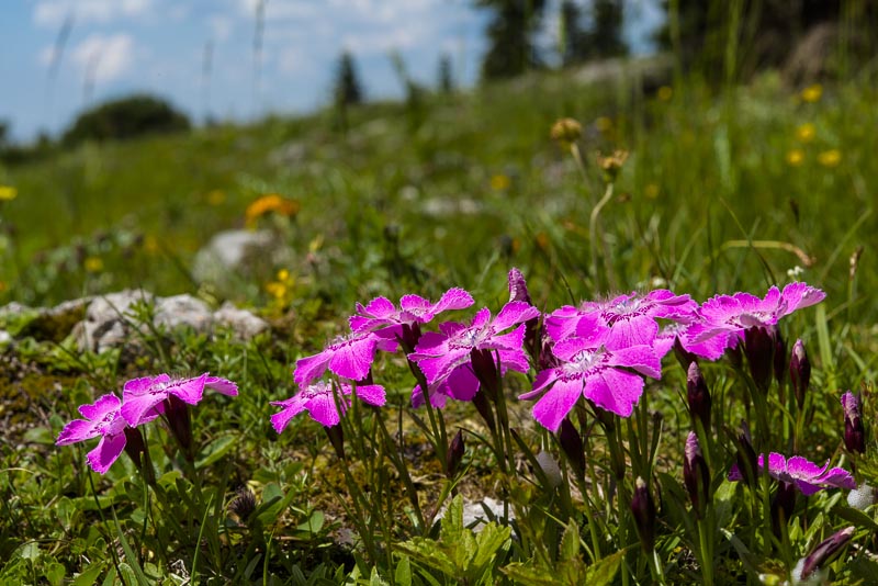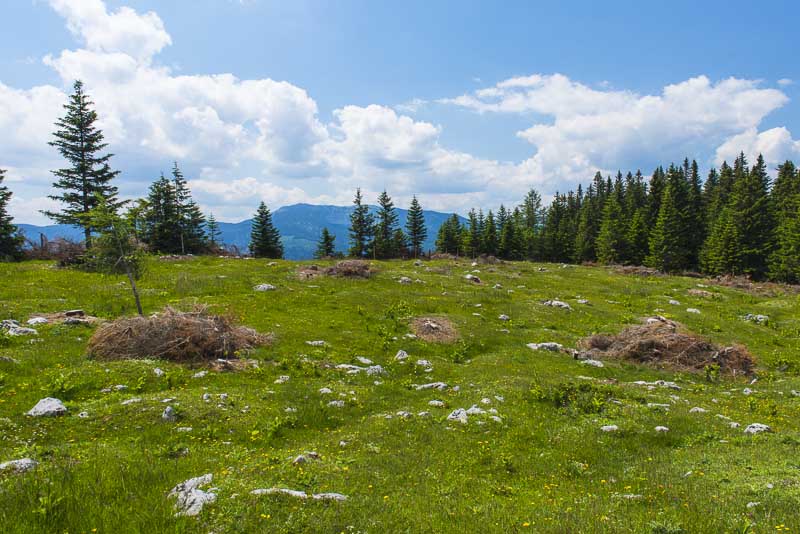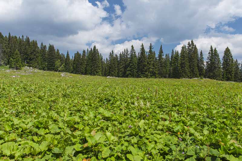 Die Wiesen hier heroben tragen die Spuren jahrhundertelanger Überweidung. Durch den hohen Nährstoffgehalt hat Sauerampfer überhandgenommen.