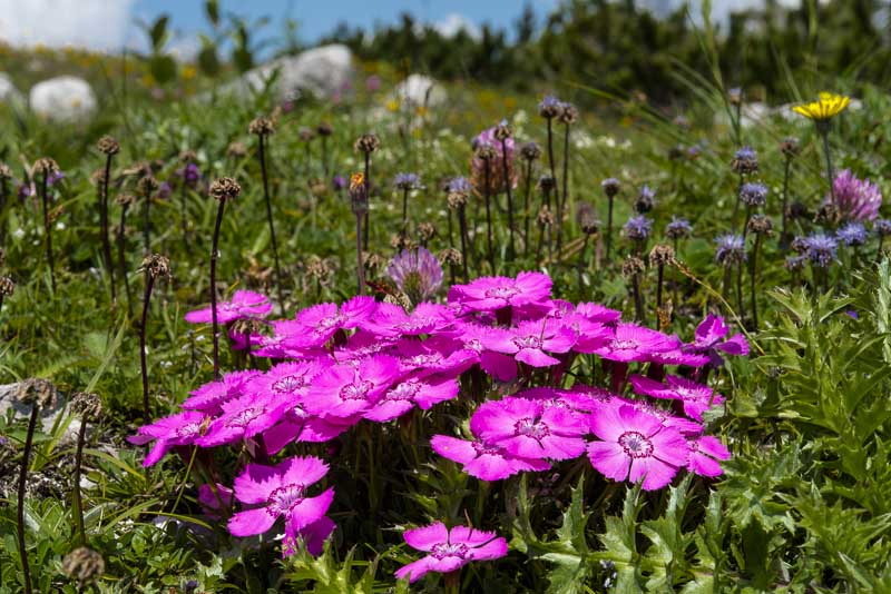 Von dort gehe ich den Fadenweg zum Almgatterl, zweige dann zum Saukogel ab, beschließe aber, nicht die ganze Strecke hin und her zu gehen, sondern kehre wieder um und wandere noch zum Fleischer - Gedenkstein, wo ich den Ochsenboden botanisch erkunde. Ein Stück Weg zum Schauerstein schaffe ich noch, dann kehre ich auch wegen fortgeschrittener Zeit um 14:30 wieder um und wandere zurück zum Sessellift. Durch meine vielen Umwege und Fotos bin ich insgesamt doch fast 6 Stunden - fast ohne Pause - unterwegs.