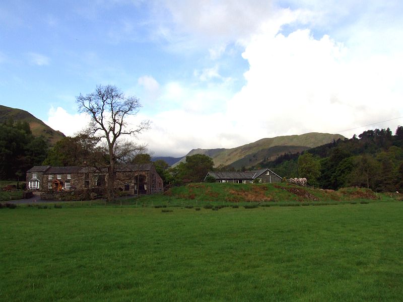 Nach 10 Stunden Schlaf und einem guten englischen Frühstück breche ich um 8:30 wieder zum Boredale Pass auf. Nach einer regnerischen Nacht wird das Wetter nun deutlich besser und viel trockener. Häuser in Patterdale.