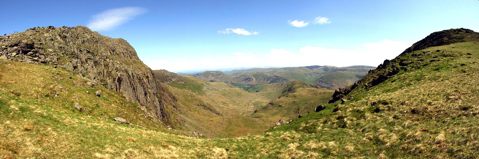 Blick hinunter ins Deepdale von nahe dem Gipfel des Hart Crag.
