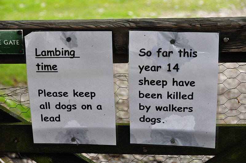 "Lämmerzeit - Hunde bitte an die Leine! Dieses Jahr wurden schon 14 Schafe von den Hunden der Wanderer getötet"