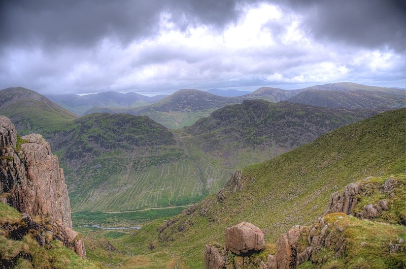 Af dem Gipfel des Pillar (892 m), der Blick geht jetzt das Ennerdale hinunter zum Ennerdale - See ...