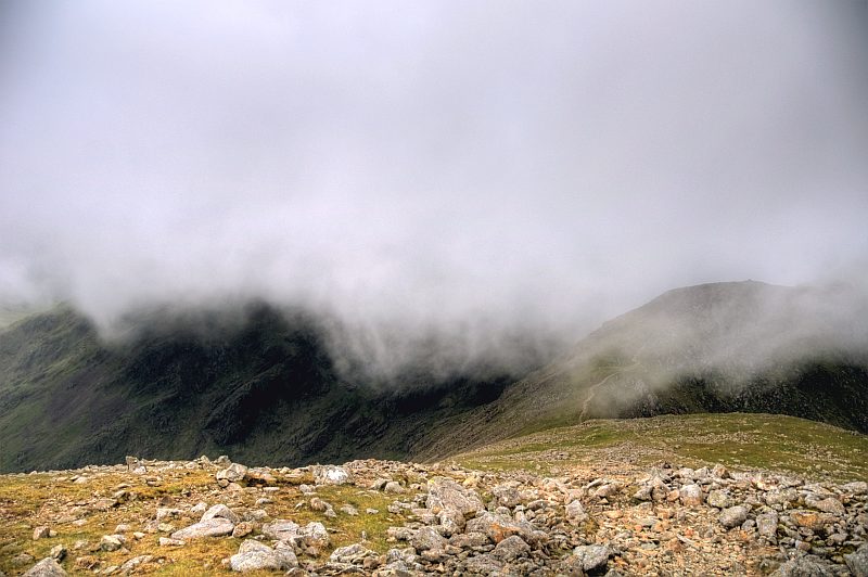 Kurzes Video des Nebels. Von jetzt an gehe ich wieder einmal nur im Nebel, deswegen von Scoat Fell, Steeple und Red Pike keine Bilder.
