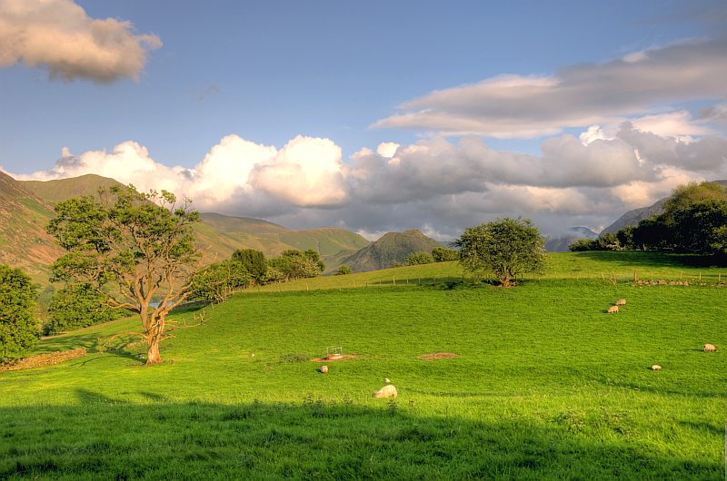 Abends fahre ich noch einmal nach Loweswater, um einige Freunde zu einem Abendessen im Kirkstile´s inn zu treffen (siehe unten). Wunderschönes Abendlicht im Buttermere - Tal; Rannerdale knotts in der Mitte hinter dem Crummock water, Great Gable ganz hinten noch teilweise im Nebel.