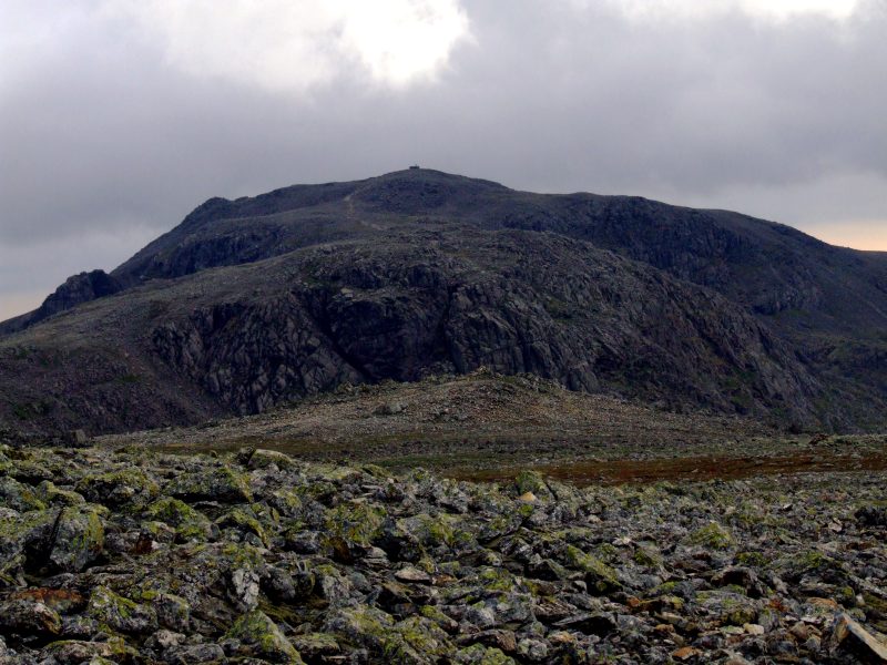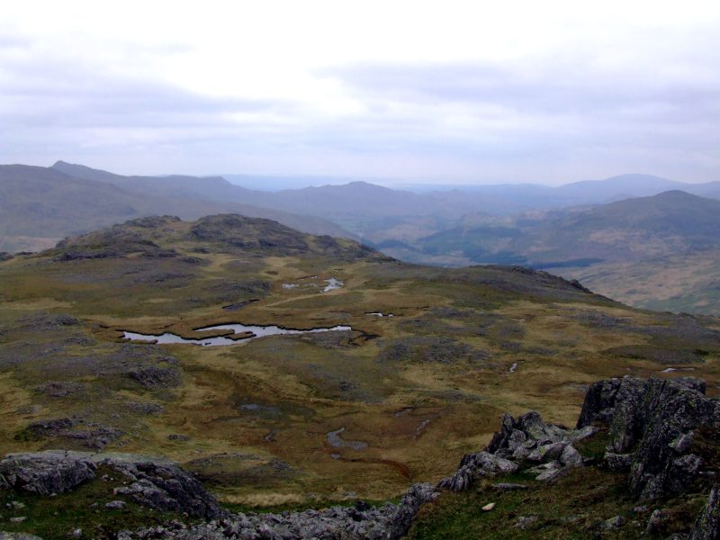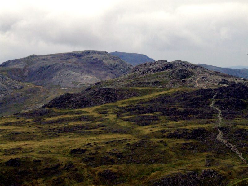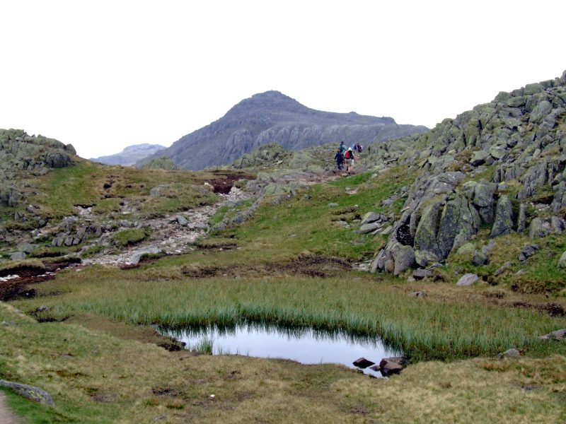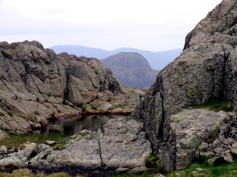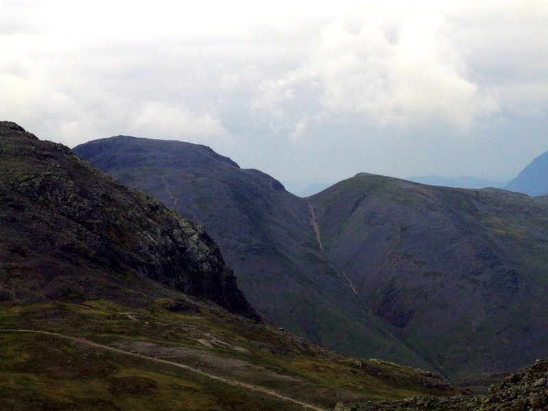 Nahe dem ersten Crinkle - ein erster Ausblick zum Scafell und zur Scafell Pike.