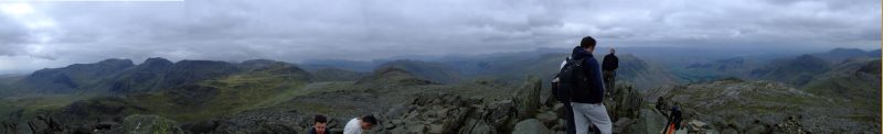 Panorama vom Gipfel des Bowfell - hierher oder ins Bild klicken für eine größere Darstellung.