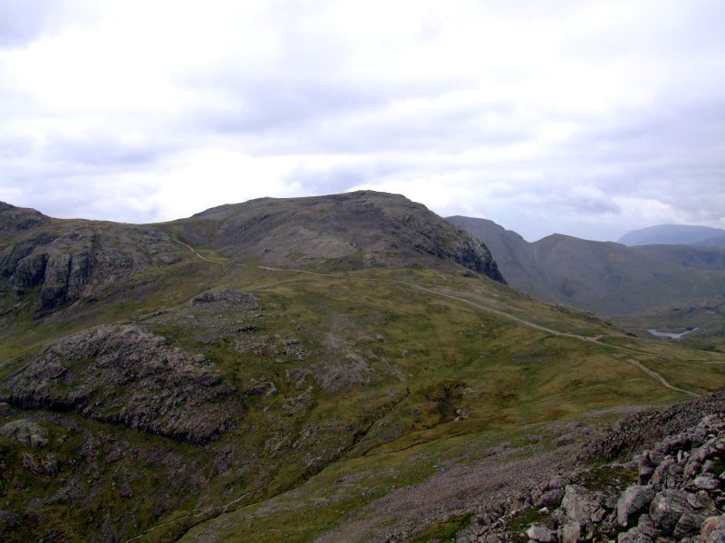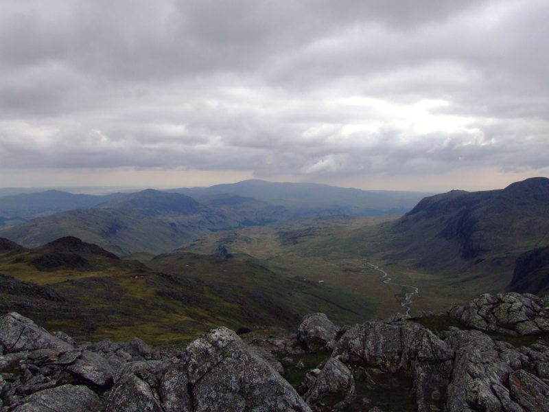 Nahe dem Gipfel des Great End - ein schöner Ausblick zum höchsten Berg Englands.